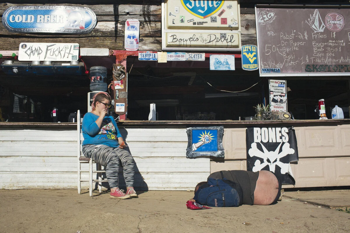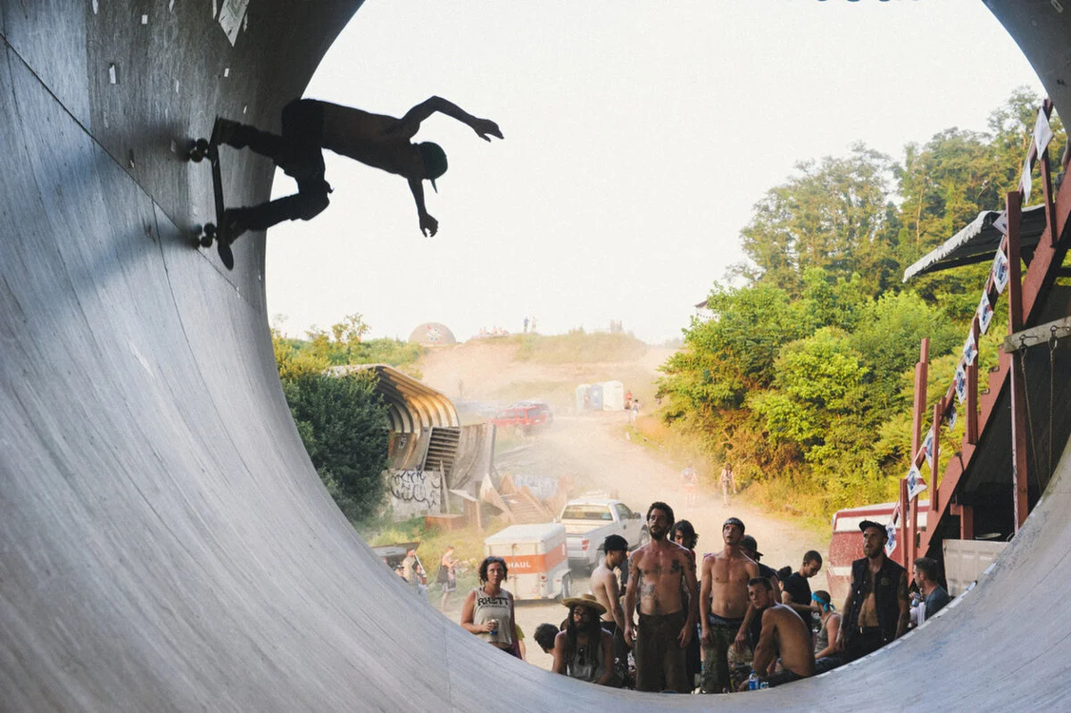 Serving as a pilgrimage point for skateboarders around the world, many also know this unique farm for its chaos. Though the chaos is often mistaken for anarchy, this is not true; anarchy is not a rebellious, destroy everything, 'fuck the police' mentality. Skatopia is about living free. Its visitors and residents are seeking a place to get away from the ‘normal’ expectations of society, coming to skateboard, playing music, party, and express themselves freely.
